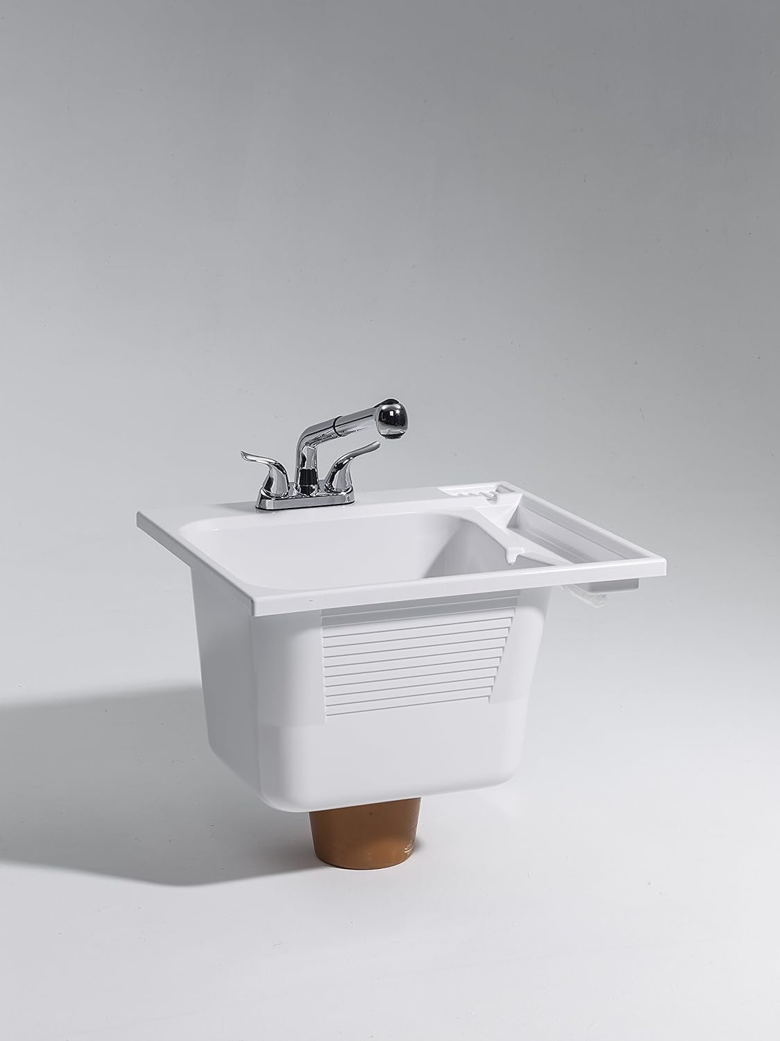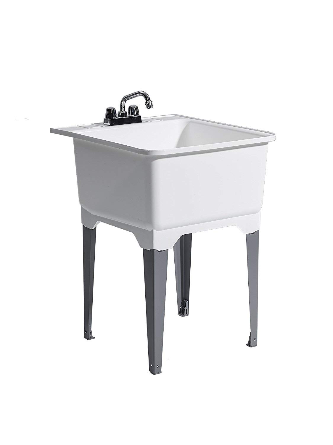 Acrylic is a lightweight reinforced plastic that resists both stains and scratches. When making a selection below to narrow your results down each selection made will reload the page to display the desired results. VETTA White Utility Sink Laundry Tub With High Arc Black Kitchen Faucet By VETTA - Pull Down Sprayer Spout Heavy Duty Slop Sinks For Washing Room Basement Garage or Shop Free Standing Tubs 411 189 99.