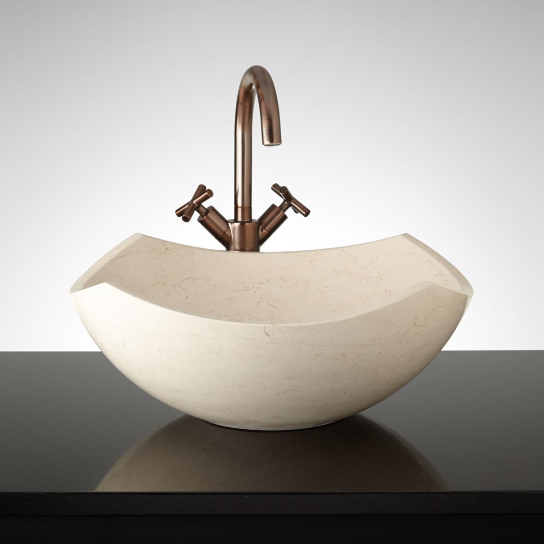 Curved Origami Polished Marble Vessel Sink Cream Egyptian Marble Bathroom