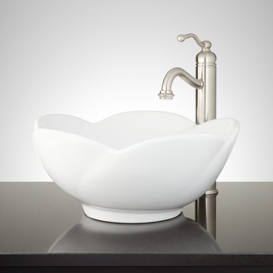 Blooming Flower Porcelain Vessel Sink White Bathroom