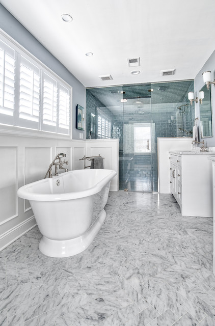 Marble Herringbone Floors With A Large Steam Shower American Traditional Bathroom New York By Kraftmaster Renovations